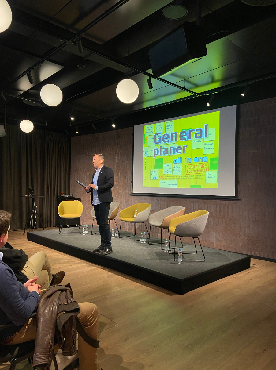 Die heutige Aufgabe des Generalplaners besteht darin, gemeinsam mit allen beteiligten Planern ein integriertes Planungsergebnis zu erwirken. Anlässlich der -Buchvernissage «Generalplaner all in one» schauen wir jedoch vor allem nach vorne: die Etablierung einer Kreislaufwirtschaft und die Decarbonisierungsziele in der Bauindustrie bedingen zukünftig auch die Integration der heute noch nachgeschalteten Unternehmer in die Planung, um Produkte und Prozesse für Bau und Betrieb auf der Basis von Daten, Business-Intelligenz und Simulationen kontinuierlich optimieren zu können.